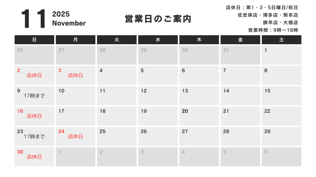 <佐賀店・長崎店・小倉店・黒崎店・佐世保店> <博多店・熊本店・諫早店・大橋店> ご来店お待ちしております。…