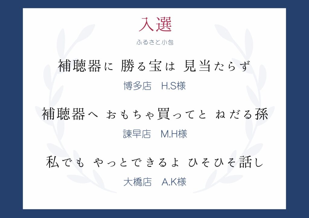 岩永補聴器グループ「第6回 補聴器川柳」に、たくさんの優れた作品をお寄せいただきありがとうございました。