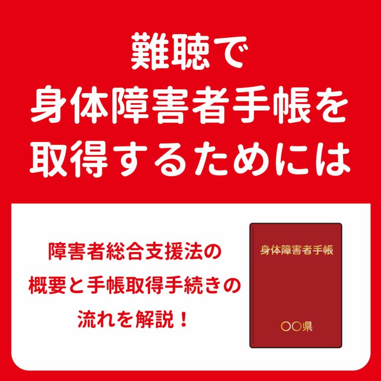 難聴者に対し国が支援する制度に『 障害者総合支援法 』を利用した補聴器購入費助成金があります。この制度を利用するためには《 身体障害者手帳 》を取得する必要があります。今回は障害者総合支援法の概要や身体障害者手帳取得までの流れを解説します。 障害者総合支援法とは? 障害者総合支援法の正式名称は『障害者の日常生活及び社会 … [ 続きを読む ]