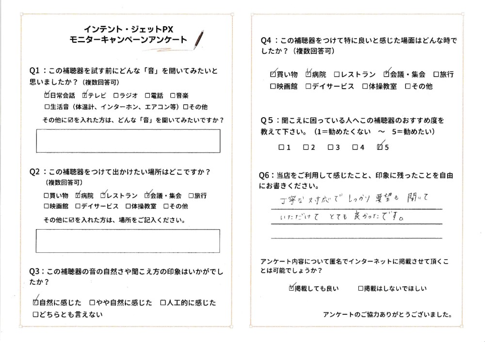 Q1: この補聴器を試す前にどんな「音」を聞いてみたいと思いましたか?
