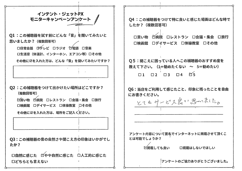 「インテント・ジェットPXモニターキャンペーン アンケート」