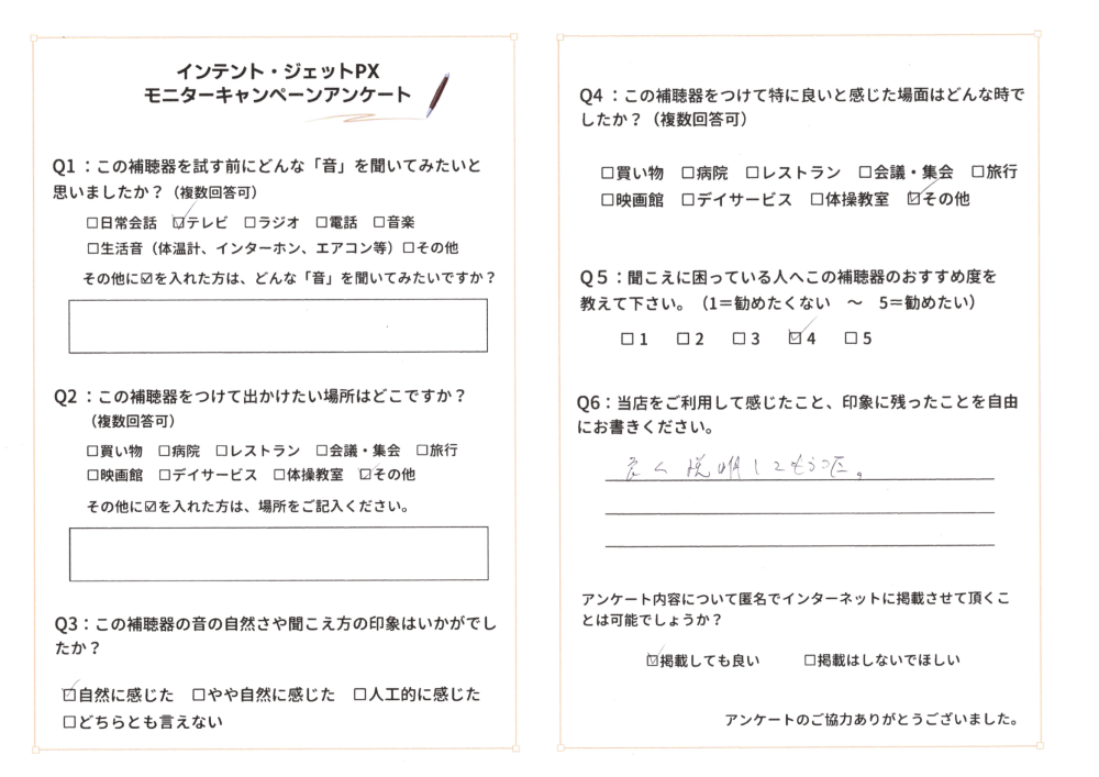 Q3:この補聴器の音の自然さや聞こえの印象はいかがでしたか?