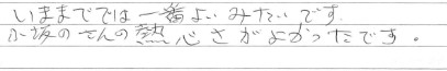 いままででは一番よいみたいです。 小坂さんの熱心さがよかったです。