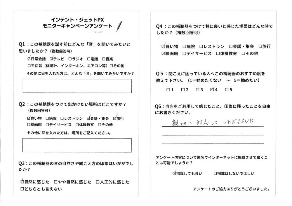「インテント・ジェットPXモニターキャンペーン アンケート」