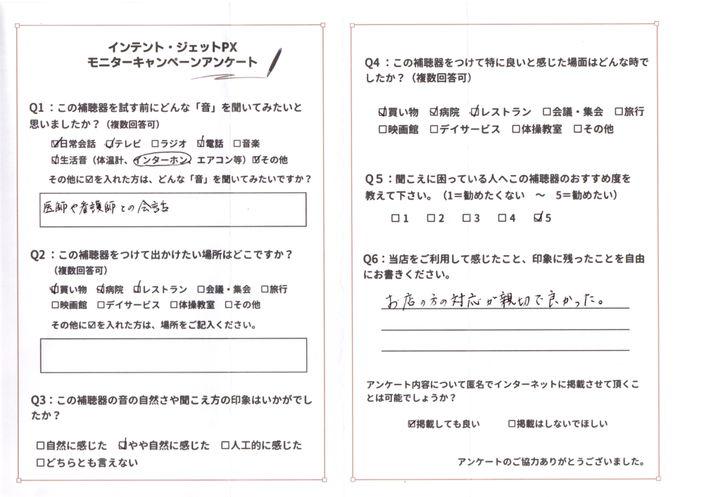 Q3:この補聴器の音の自然さや聞こえの印象はいかがでしたか?